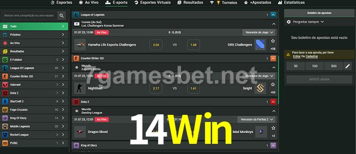 A aposta 14Win oferece aos jogadores a experiência mais conveniente de apostas em eSports!